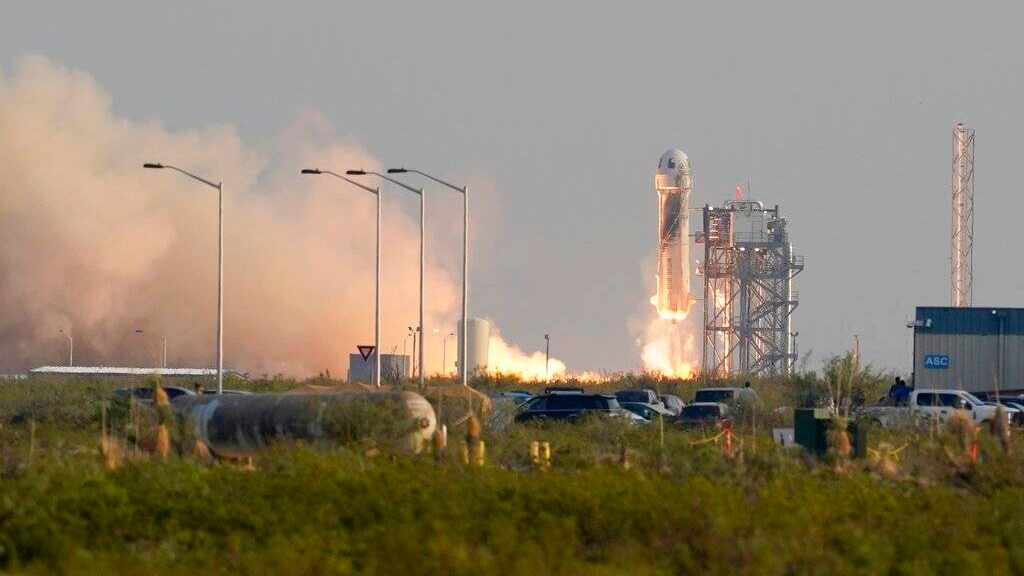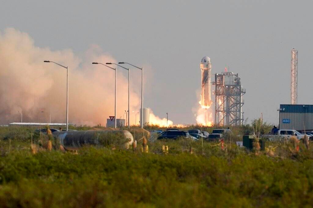 El cohete New Shepard de Blue Origin, que lleva el nombre del primer astronauta estadounidense, remontó vuelo con su grupo ecléctico de pasajeros en el 52do aniversario del alunizaje de Apolo 11.