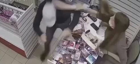 Según informa Daily Mail, el hecho ocurrió en la ciudad rusa de Novokuznetsk, en donde un delincuente intentó robar el dinero de la caja registradora en un sex shop.