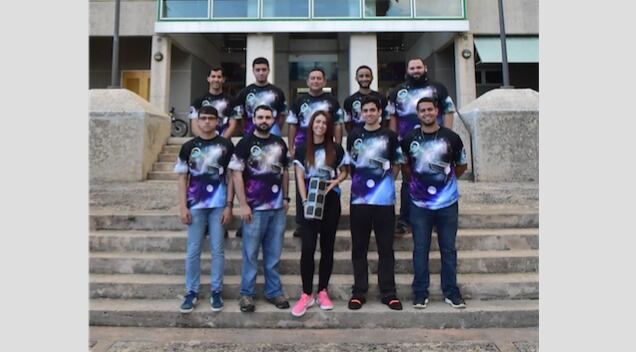 8. El último equipo de trabajo del PR-CuNaR2 está compuesto por los estudiantes Wilhem Sánchez Rodríguez, Jesús Marrero Colón, Carlos Vergara Quiles y los recién graduados Lucas Soto Balseiro, Edwardivan LaBarca y Carlos Figueroa Gibson.