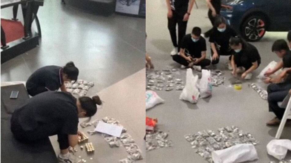 Según informan medios locales, el hecho ocurrió en la ciudad china de Zhoukou, en donde un individuo llegó con 17 sacos de monedas de distintos valores, para comprarle un vehículo a su hijo.