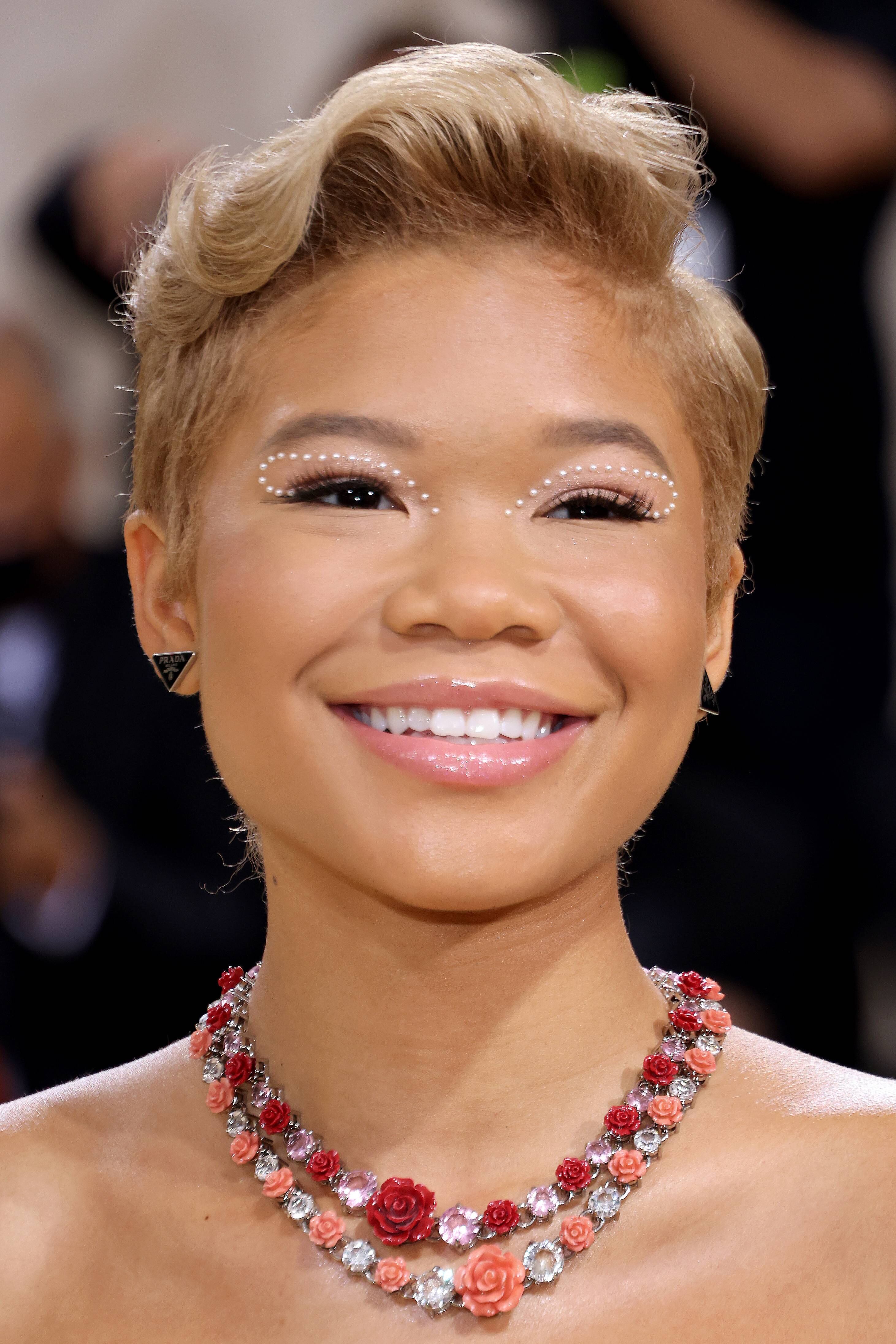 “El look de Storm se inspiró en su vestido personalizado de Prada. Queríamos mantener el aspecto juvenil y elegante, pero aún así vanguardista”, comentó la maquillista, Pauly Blanch, quien estuvo a cargo del maquillaje de Storm.