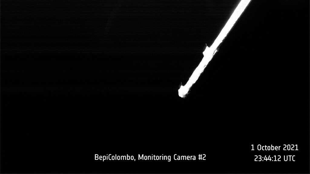 Después de sobrevolar Mercurio a altitudes de menos de 200 kilómetros (125 millas), la nave espacial tomó una foto en blanco y negro de baja resolución con una de sus cámaras de monitoreo antes de alejarse nuevamente.