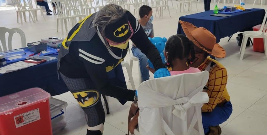 Los niños que llegaban al centro, de manos de sus padres o encargados, se sorprendían al ver que la enfermera que los iba a vacunar no tenía la típica bata blanca que las identifica. En este caso la enferma vestía una capa Batman y su atuendo era del súper héroe.