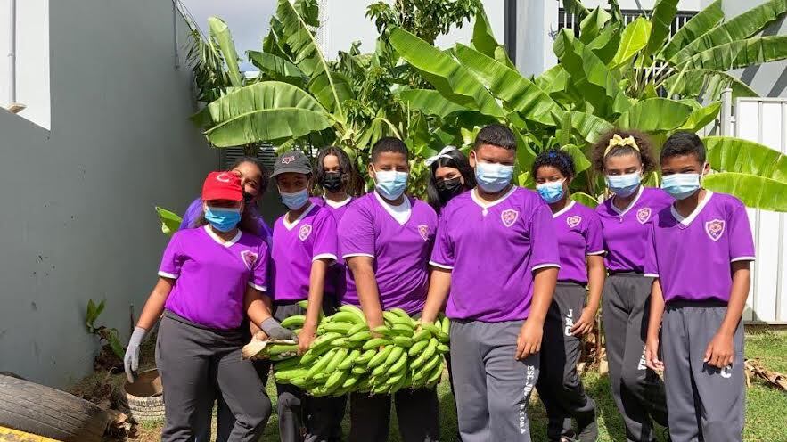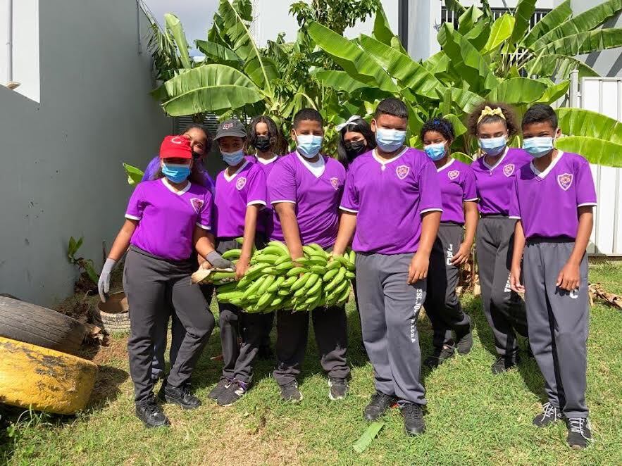 Los pupilos de Laura Rodríguez Muñiz, distinguida coordinadora del Programa de Escuelas Sustentables de la Corporación para la Sustentabilidad Ambiental (COSUAM de Puerto Rico) cosecharon frutas y vegetales de su huerto escolar para preparar comidas, llevaron su alegría a la comunidad y practicaron el reciclaje distribuyendo obsequios navideños en cajas de zapatos reutilizadas. Los jóvenes cosecharon plátanos y guineos con los que se prepararon platanutres, batidas de guineo y guineítos hervidos. Los estudiantes también debían sembrar estas plantas en sus hogares para observar su desarrollo durante el semestre y completar un trabajo final de clase.