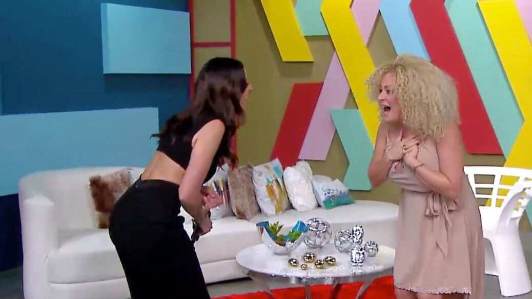 La exMiss Universo Dayanara Torres sorprendió a Angelique Burgos “La Burbu” en su programa televisivo “Pégate al Mediodía” por Wapa.