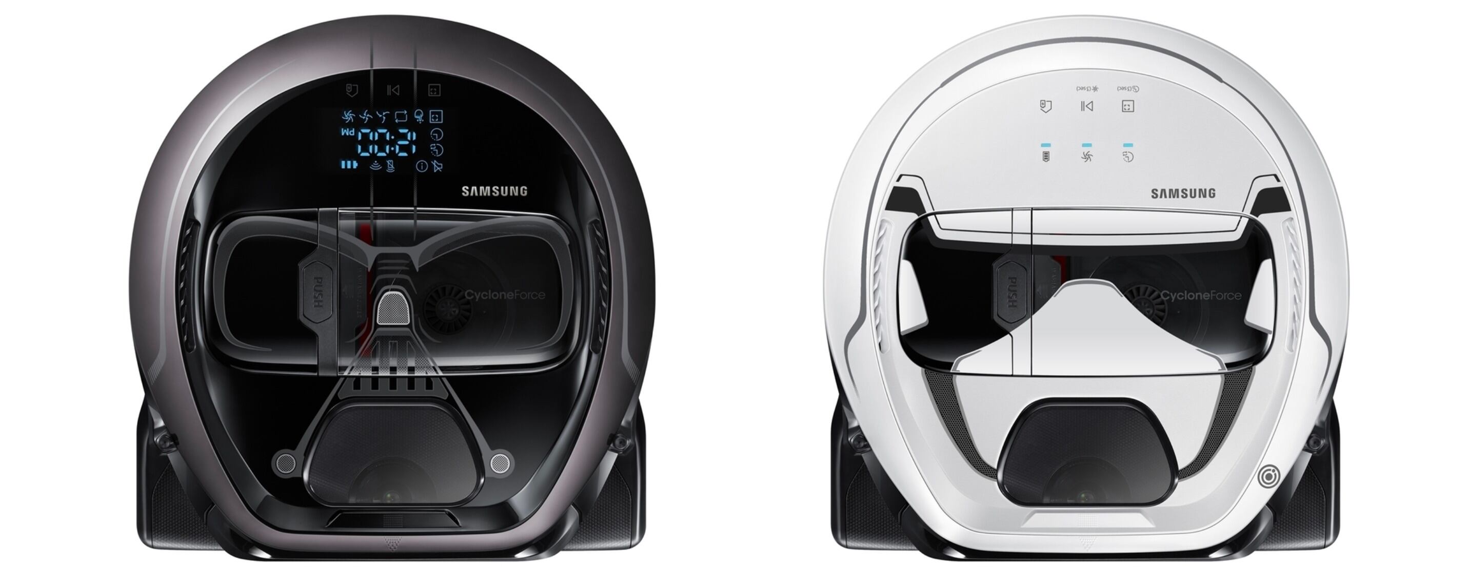 La versión de Darth Vader asemeja a este personaje, mientras que la de Stormtrooper tiene el diseño de los característicos cascos blancos. La primera cuenta con la función de Point Cleaning con la cual puedes conducirlo fácilmente con el control para limpiar un lugar específico y conectarla vía Wi-Fi para controlar su funcionamiento desde cualquier lugar.