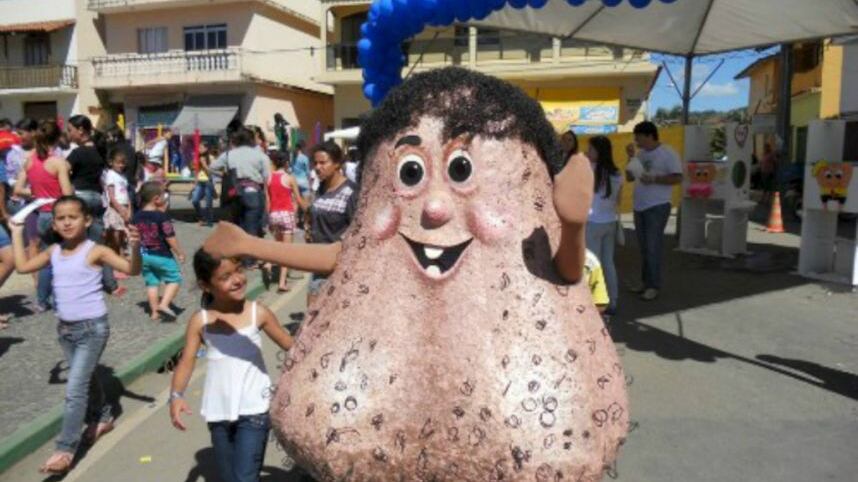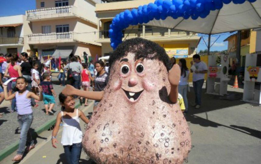 En un evento reciente, tanto niños como adultos se tomaron fotografías con la inusual mascota de la AAPEC (Asociación de Asistencia para Personas con Cáncer), que describen como un “amistoso muñeco en forma de testículos”.