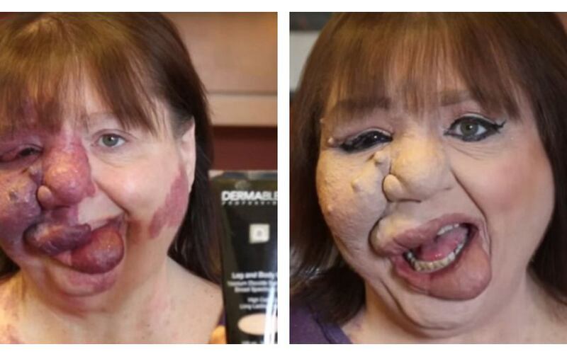 Esto mismo le pasa a Joanne Tronconi. Tiene 61 años y padece del síndrome de Klippel- Trenaunay, que le dejó una gran marca roja en su cara y también una inflamación que la deformó a sus 40 años. Con ayuda de su hijo, publicó un video en el que se muestra cómo se maquilla y se transforma.