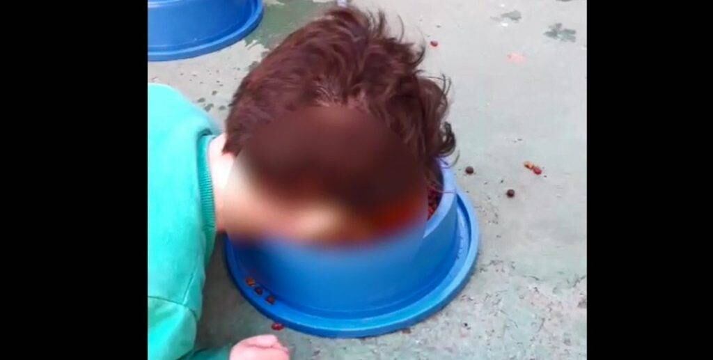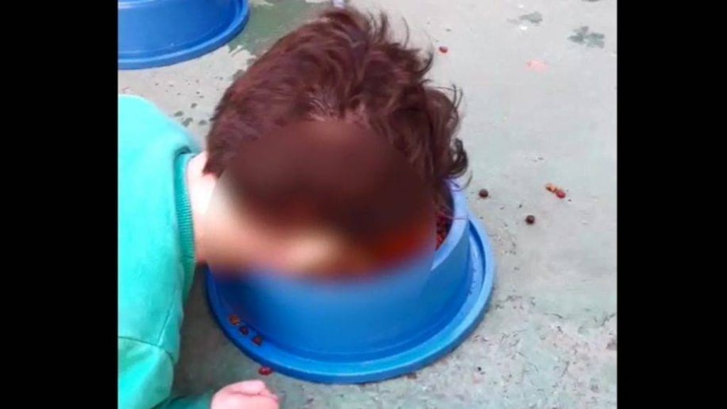 En la secuencia se puede ver al menor de tan solo 2 años de edad -quien sufre insuficiencia múltiple y no puede caminar- con su cara dentro del plato mientras que su madre y una tía abuela se ríen de la situación.