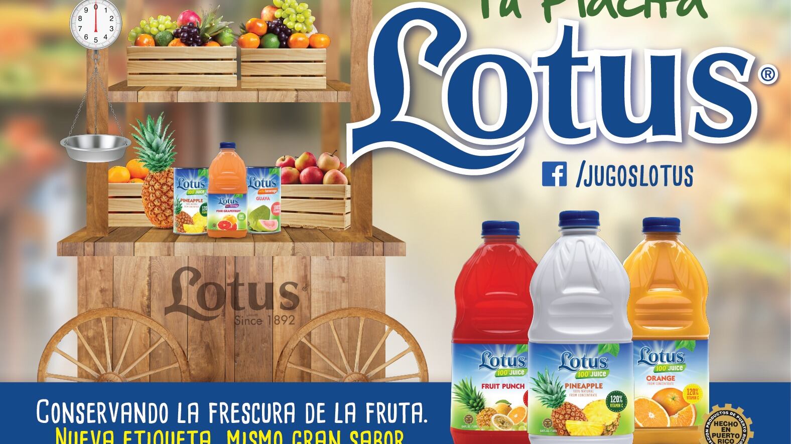 Lotus es una marca de herencia, reconocida por la frescura de sus jugos y variedad de sabores de frutas. Gran parte de su reconocimiento proviene de su tradicional jugo de piña, el cual por años se ha destacado como uno de los predilectos en los hogares puertorriqueños. Para celebrar el compromiso con sus consumidores por el pasado siglo y continuar ofreciéndoles alternativas innovadoras, Lotus estrena nueva imagen en sus etiquetas de jugos de 64 y 42 onzas. De igual forma, tras lanzar la variante de toronja rosada, lanza ahora el nuevo sabor fruit punch 100 % jugo, ambos en formato de 64 onzas.