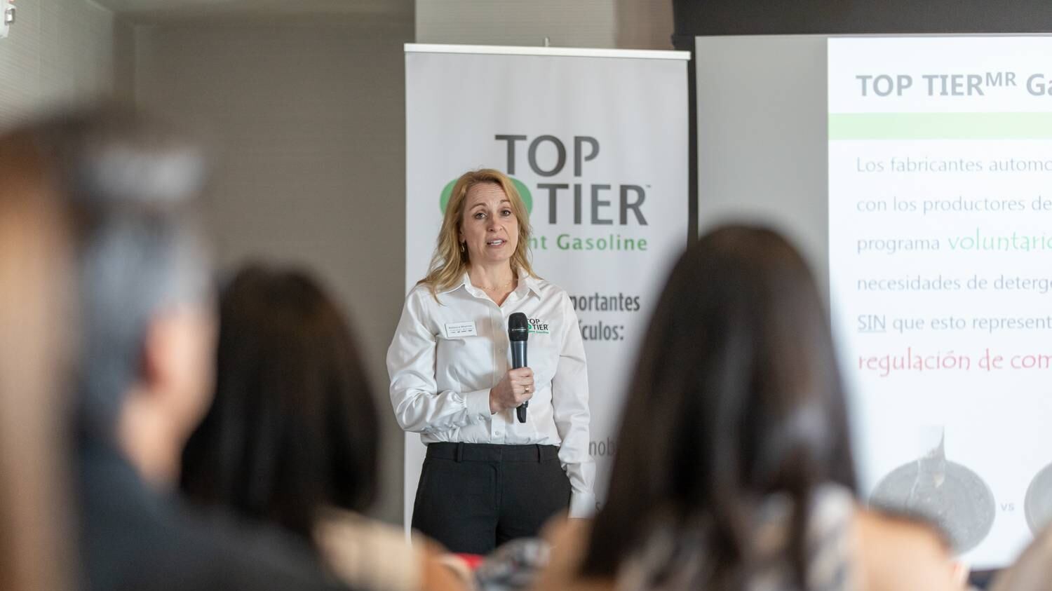 Rebecca Monroe, Fuel Trademark and Infrastructure Lead de General Motors y representante de TOP TIER, estuvo de visita en la Isla para ofrecer detalles sobre el origen de la certificación y los beneficios que representa el que consumidores y vendedores de autos recomienden y utilicen combustible certificado por el programa.