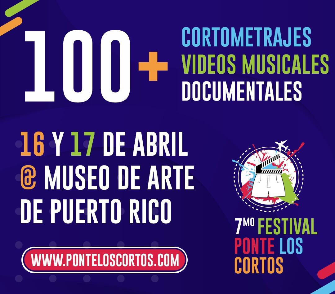 El Festival Ponte Los Cortos presenta su séptima edición, el 16 y 17 de abril en la Sala Raúl Juliá del Museo de Arte de Puerto Rico. Este año, se aceptará un número reducido de personas en la sala, por lo que se requiere una reservación.