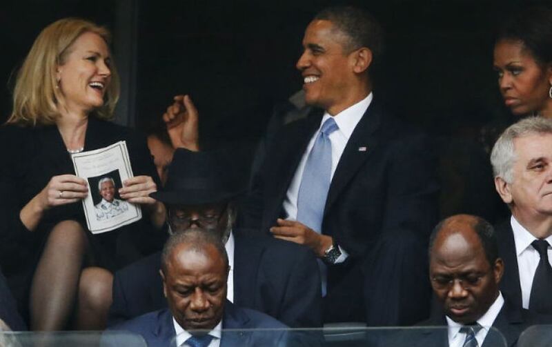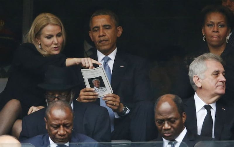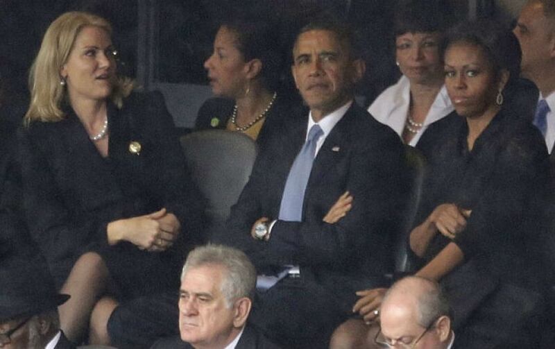 La “escena de celos” tuvo escenario en la ceremonia que se realizó hoy en el estadio Soccer City para recordar al fenecido expresidente sudafricano Nelson Mandela.