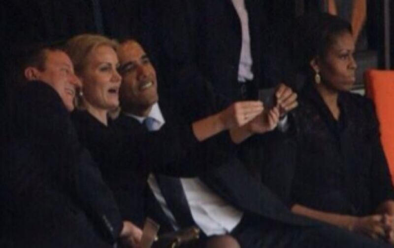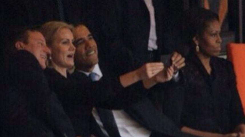 Al parecer, según la secuencia de fotografías que se han publicado en la Internet, Michelle se molestó porque su esposo se tomó una foto estilo “selfie” con la mujer rubia. En otras imágenes, se puede ver como el Presidente de Estados Unidos está sentado al lado de su esposa y no entre las dos mujeres como se puede aprecia en las primeras fotos.