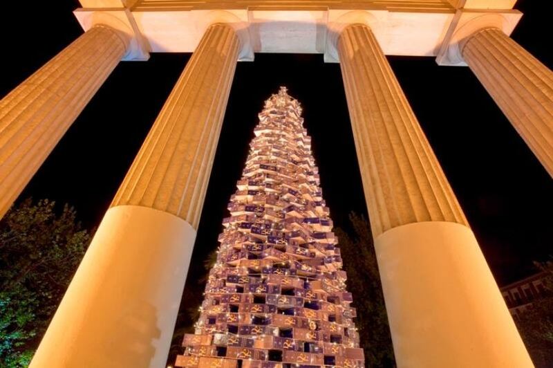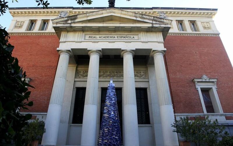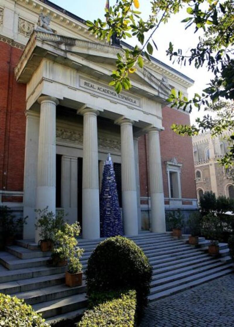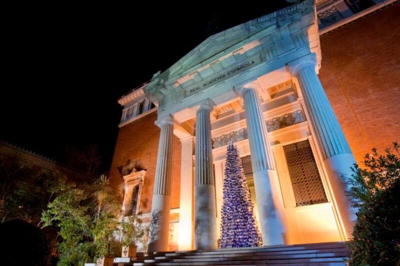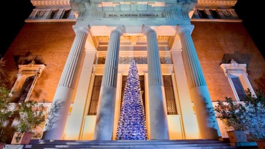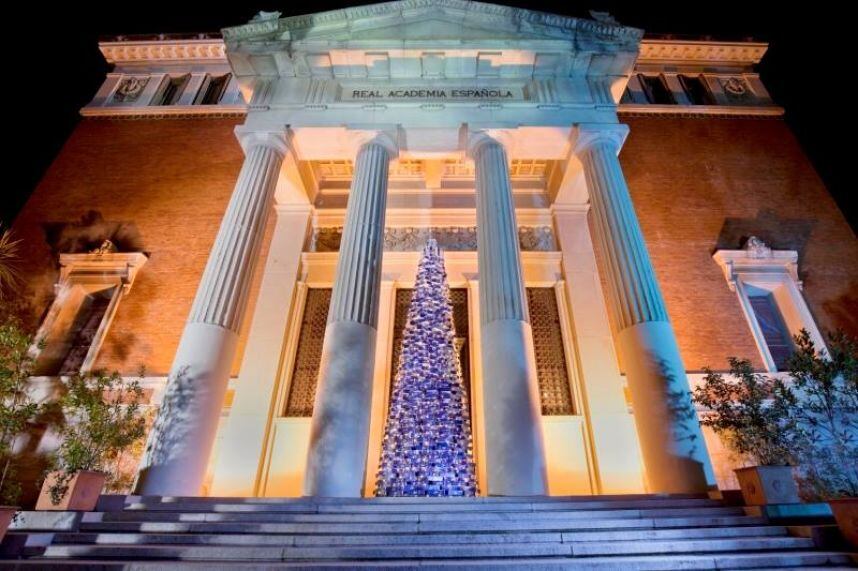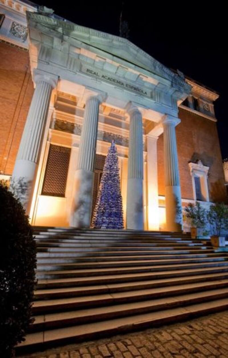 Esta mañana, la Real Academia de la Lengua Española presentó su árbol navideño conformado por un millar de ejemplares de la última edición del “Diccionario de la lengua española”.