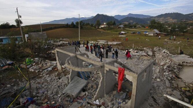 Los fuegos artificiales estaban almacenados en una vivienda detrás de una iglesia para ser usados en una festividad religiosa. Un cohete lanzado por alguien afuera cayó sobre la pirotecnia y provocó la explosión que destruyó la vivienda.