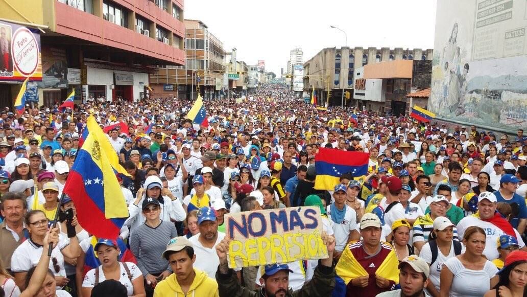 Masas de manifestantes con camisas blancas, máscaras antigás caseras y banderas sobre los hombros cerraron el sábado una de las principales arterias de la capital venezolana.
