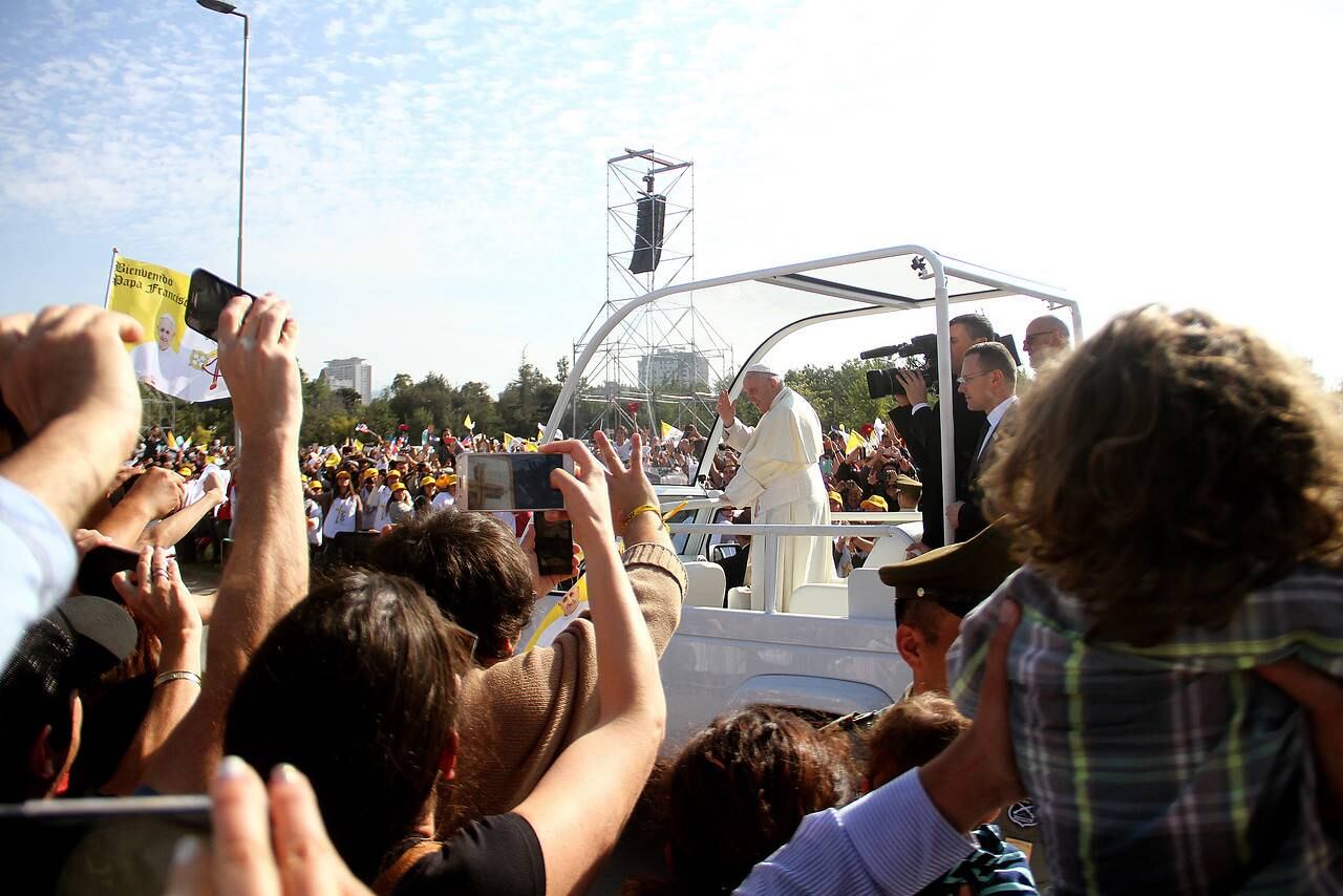 Como un verdadero rockstar. Así recibieron los fieles católicos al papa Francisco en el Parque O’Higgins, de Santiago de Chile, lugar donde tenía que ofrecer una homilía con cerca de 400 mil personas repitiendo la palabra “amén”.