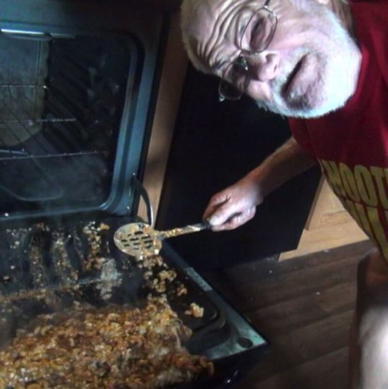 Al parecer, a Charles Green le molesta que su nieto no lo ayude con las galletas de Navidad.