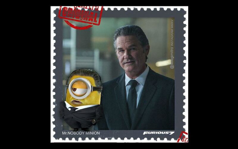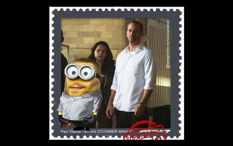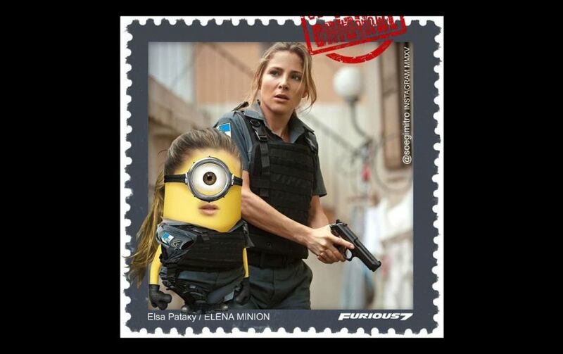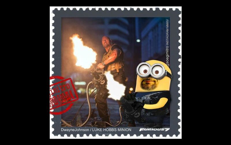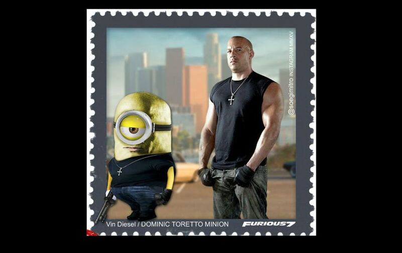 En la imagen podemos ver a “Dominic Toretto”, “Brian O’Conner”, Hobbs” y otros protagonistas de esta taquillera cinta con la piel amarilla y una silueta cilíndrica.
