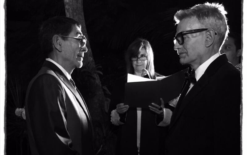 El actor Jorge Luis Ramos y el director Vicente Castro, se unieron en matrimonio ayer viernes en la residencia de ambos, día en que conmemoraron sus 32 años de relación.