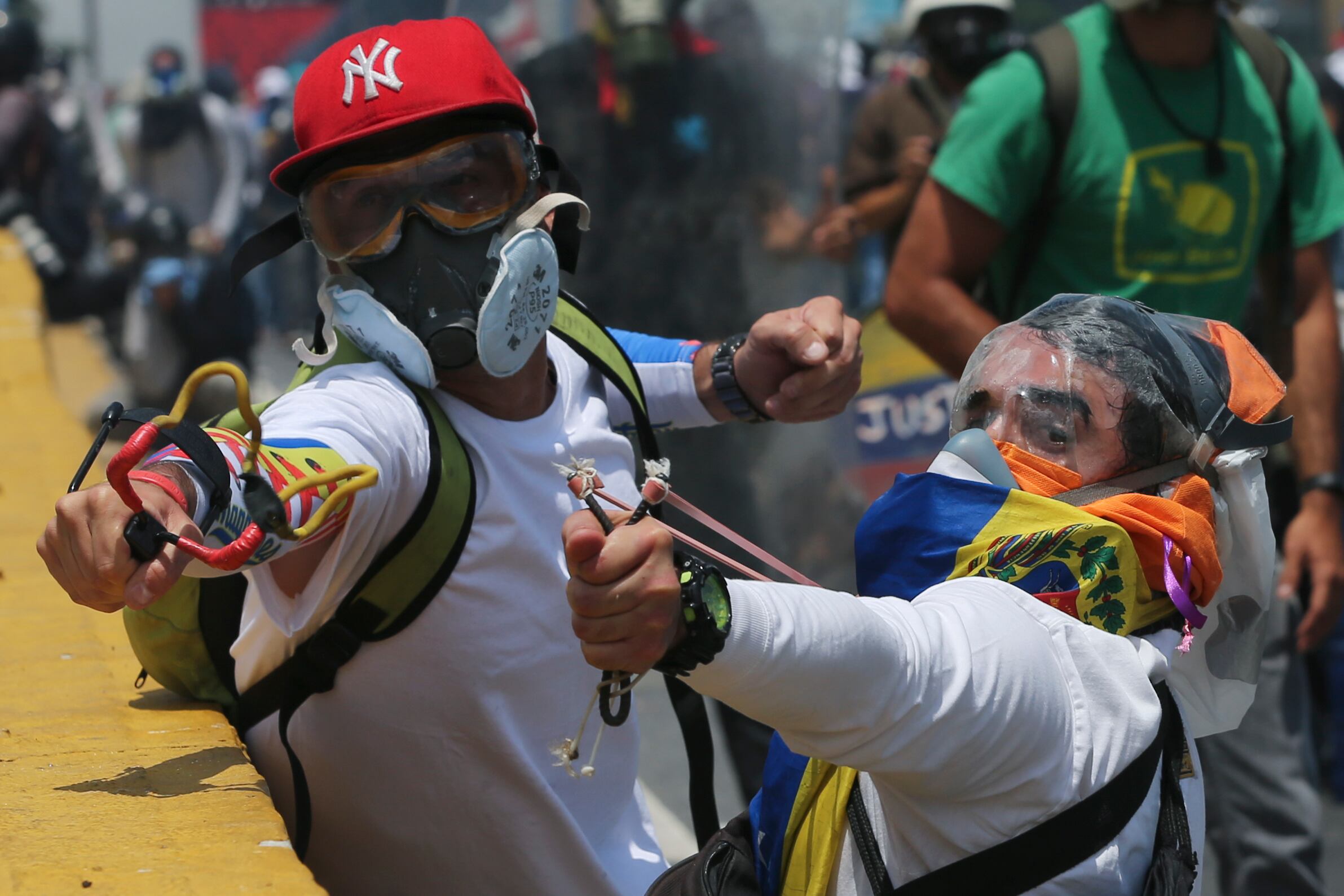 “Soy simplemente un venezolano que decidió salir a la calles para defender sus derechos. Estaremos en las calles hasta que se vaya este régimen”, dijo un encapuchado de 19 años que pidió identificarse solo como Javier porque teme ser detenido por los cuerpos de seguridad.