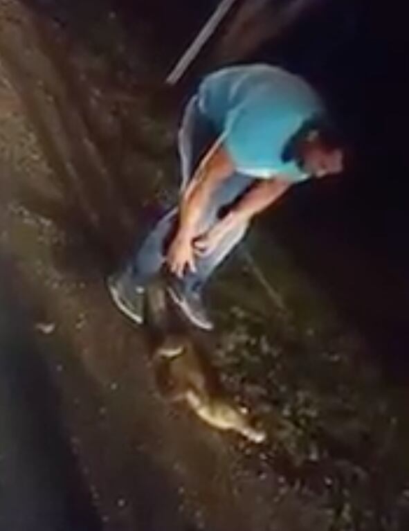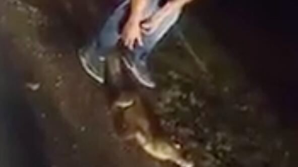 Un vídeo colgado en las redes sociales muestra cómo un caimán muerde la pierna de un hombre mientras este lo capturaba.