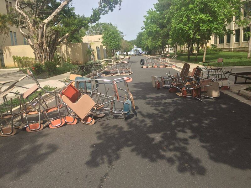 En repudio a los $450 millones en recortes que propuso la Junta federal, los alumnos mantienen bloqueado el acceso en cada entrada.