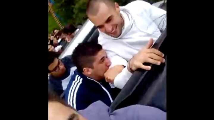 En la grabación se muestra como el joven se aferra al brazo de su compañero ante el temor de subirse a una montaña rusa, mientras sus compañeros reían a carcajadas.