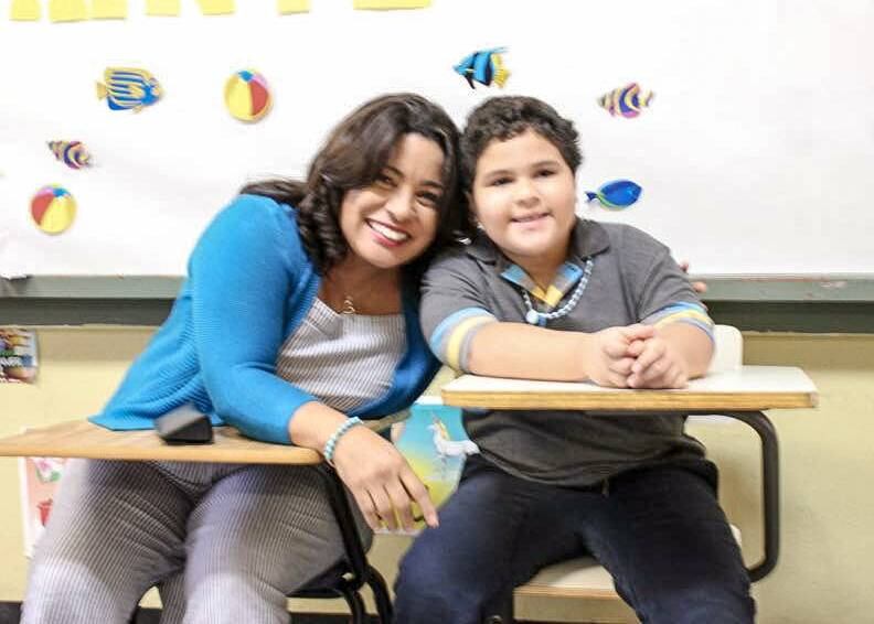 La representante María Milagros Charbonier visitó la escuela Ramón Baldorioty de Castro en Salinas para personalmente entregar a tres niños que cursan el segundo grado pupitres para personas zurdas.