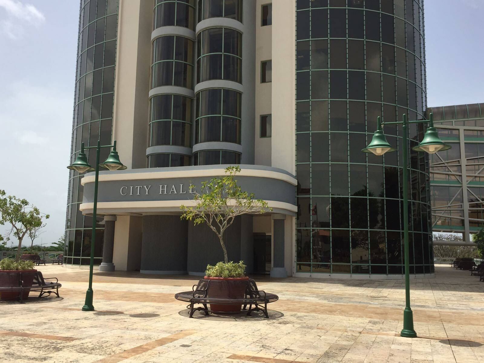 Un grupo de empleados del Municipio de Guaynabo no quiso reaccionar esta tarde a la suspensión del alcalde Héctor O’Neill y mientras se acercaba la prensa, ellos regresaban a sus áreas de trabajo.