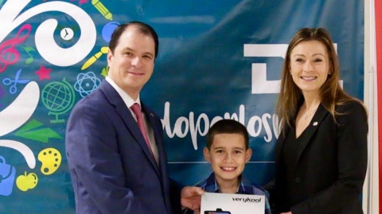 La Secretaria de Educación, Julia Keleher, hizo entrega de los dispositivos a los estudiantes, entre tercero y undécimo grado, que fueron seleccionados mediante sorteo entre los alumnos de las escuelas que tuvieron entre 99% y 100% de asistencia en los cuatro días regulares de las pruebas de Medición y Evaluación para la Transformación Académica (META PR).