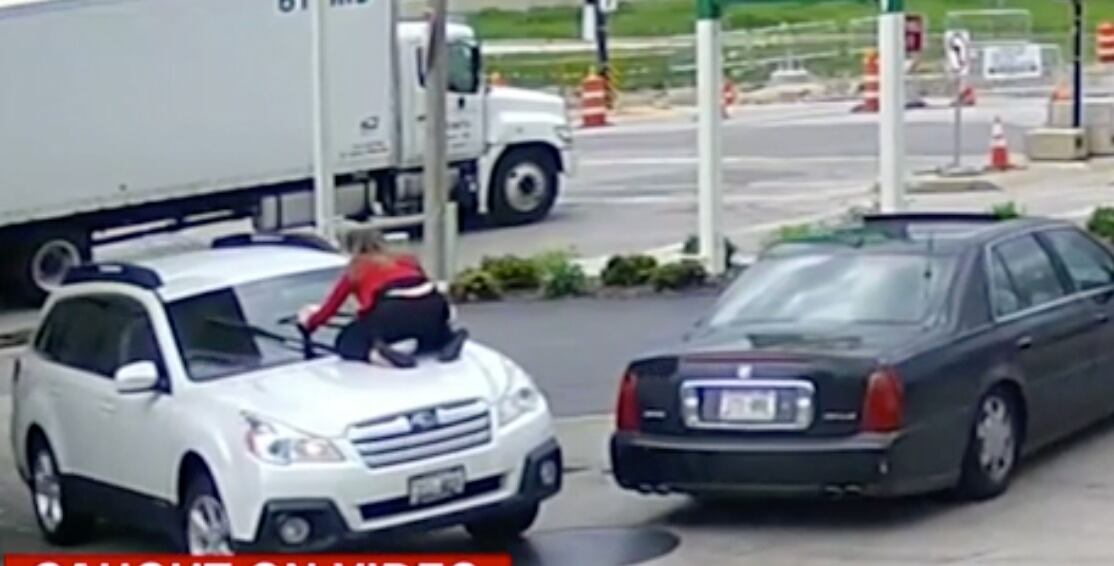 De acuerdo con un video presentado en la cadena de noticias CNN, se ve el momento en que la fémina se dispone a abastecer su guagua de combustible, y mientras esto ocurre un sujeto se sube al vehículo de esta con la intención de robárselo. A lo que esta inmediatamente reaccionó trepándose en la parte delantera de la guagua, para tratar de impedir que este se saliera con la suya.