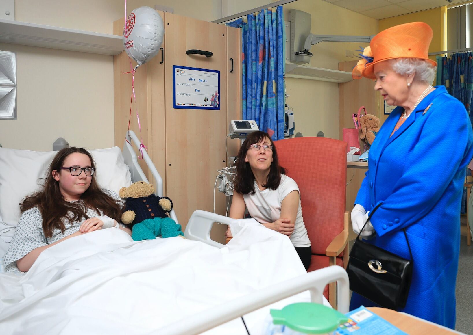 La monarca de 91 años visitó a Evie Mills, de 14 años; Millie Robson, de 15, y otros jóvenes que se recuperaban de heridas graves por las esquirlas del explosivo en el Hospital Real Infantil de Manchester.