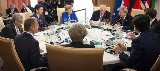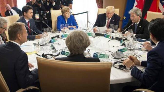Merkel dijo que las democracias desarrolladas del G7— Alemania, Francia, Gran Bretaña, Italia, Japón, Estados Unidos y Canadá— mantuvieron una discusión “razonable” sobre comercio en la que acordaron rechazar el proteccionismo. El acuerdo mantuvo una disposición de reuniones anteriores, frente la posición de Trump, quien sostiene que el comercio debe ser “equilibrado y justo” además de libre.