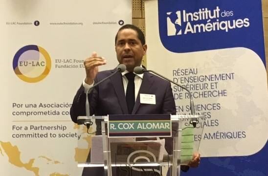 La ponencia del también abogado se desarrolló bajo el tema de la identidad, las relaciones internacionales y la geopolítica del Caribe bajo el ámbito de Estados Unidos y la Unión Europea, como un estudio de contrastes. De dicha mesa redonda además participó el Prof. Antonio Romero de la Universidad de La Habana, Jessica Byron, directora del Instituto de Relaciones Internacionales de la Universidad de las Indias Occidentales y Aldo Dell’Ariccia, director de la de la división de México, América Central y el Caribe del Servicio Europeo de Acción Exterior (SEAE), entre otros.