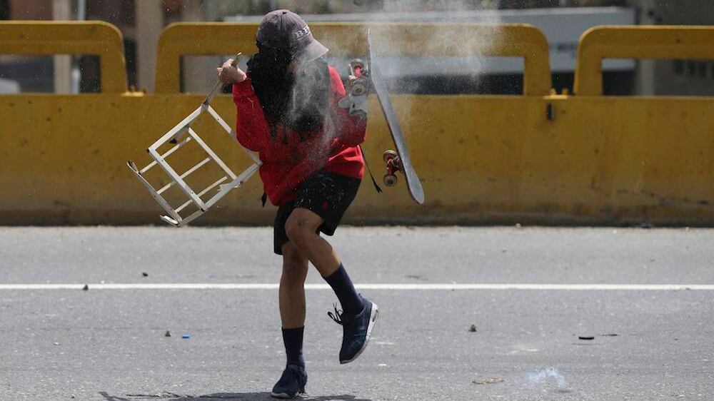 En este país sudamericano donde comer es una odisea diaria para muchas familias, cientos de venezolanos tenían previsto realizar un recorrido de 8.5 kilómetros para exigirle al gobierno remediar la severa escasez y los elevados costos de alimentos básicos como leche, harina de maíz, aceite, azúcar, arroz, huevos, entre otros. A semejanza de los anteriores 62 días de protestas, la Guardia Nacional bloqueó con vehículos blindados, que portan muros plegables, y lanzaron gas pimienta y granadas de gases lacrimógenos para dispersar a los manifestantes, apenas a unas 300 metros del punto de partido de la caminata en la barriada de La Vega, al suroeste de la capital. Se esperaba que durante el recorrido, en varios puntos intermedios, se sumasen otros manifestantes. Poco después, un pequeño grupo de manifestantes trató de retomar la marcha por calles paralelas a la ruta original, pero fueron repelidos por los militares a bordo de motocicletas, que dispararon profusamente gases lacrimógenos, y mediante el uso de vehículos con cañones de agua. Muchos se resguardaron en edificios cercanos y fueron auxiliados por lso vecinos. La marcha forma parte del aluvión de protestas casi a diario que desde finales de marzohan dejado al menos 63 muertos, 1.118 heridos y 422 detenidos, según cifras de la Fiscalía General. La víctima más reciente fue identificada como Yoiner Peña, de 28 años, quien falleció en la madrugada del sábado tras ser herido de bala el 11 de abril en la ciudad occidental de Barquisimeto, confirmó la Fiscalía General en un comunicado. Los manifestantes sostienen que el gobierno de Maduro está mutando rápidamente en un régimen autoritario y que la iniciativa del mandatario de convocar en mayo una Asamblea Constituyente que estaría a cargo de redactar una nueva carta magna es un intento más de este para consolidar su poder. “Más allá que el gobierno de Maduro es más autoritario, más represivo, no podemos permitir que siga imponiéndonos un modelo socialista de atraso, de pobreza”, dijo el diputado opositor Miguel Pizarro, poco antes del altercado con los militares. “Sin abandonar nuestra lucha por el rescate de la democracia, por la libertad de los presos políticos, por elecciones generales; nuestro temario incluye exigir soluciones ante la peor crisis económica y social de nuestra historia, que provoca que en muchos hogares los padres dejen de comer para que sus hijos coman”, expresó. Los opositores han intensificado sus actividades en áreas que han sido bastiones del oficialismo desde la llegada al poder en 1999 del ahora fallecido presidente Hugo Chávez, predecesor y mentor de Maduro, quien convirtió las barriadas pobres en su principal fuente de apoyo mediante la inversión de decenas de miles de millones de dólares del petróleo en generosos programas sociales. La popularidad de Maduro, empero, viene en descenso afectada en buena medida por una inflación de tres dígitos, el aumento de la criminalidad y una escasez generalizada de productos básicos. “La crisis nos afecta a todos, aquí en el oeste también se pasa hambre”, comentó María Angélica Nieto, una ama de casa de 49 años, que golpeaba una olla al grito “queremos comida, queremos libertad”.