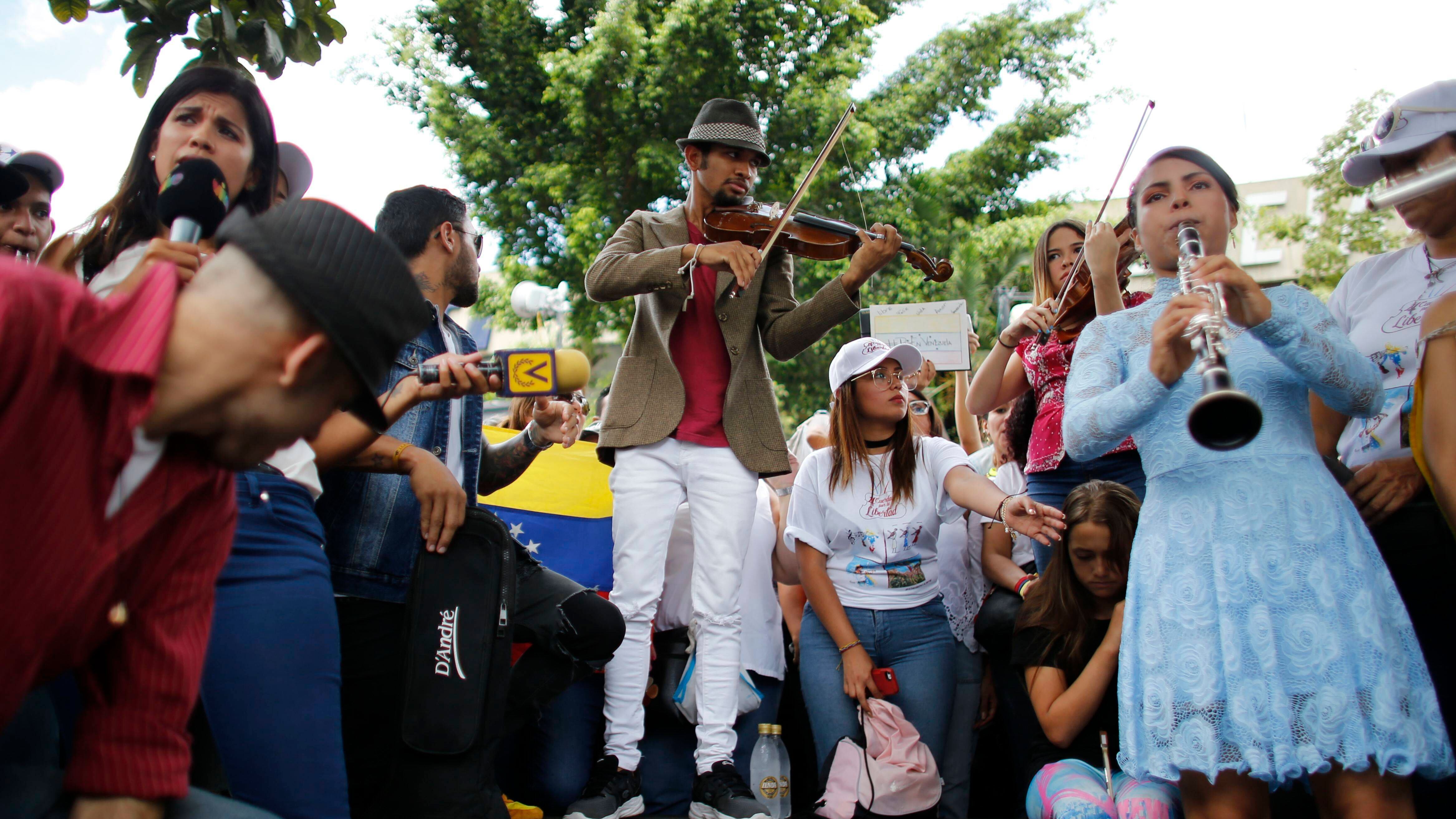 “Venezuela merece la pena y merece que nos unamos”, dijo el violinista entre llantos mientras cientos de personas le aplaudían y ondeaban banderas venezolanas al grito de “¡sí se puede!”.