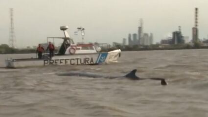 Según los medios de comunicación locales, los dos mamíferos aparecieron en la costa del Río de la Plata el miércoles (07 de junio) por la mañana. Dos barcos de guerra los alejaron de la capital y salieron al mar. Los avistamientos de ballenas son raros en la capital Buenos Aires, pero los mamíferos marinos son regularmente vistos en el sur de la península de Vales en el país durante la temporada de ballenas de septiembre a marzo. Video: Reuters.
