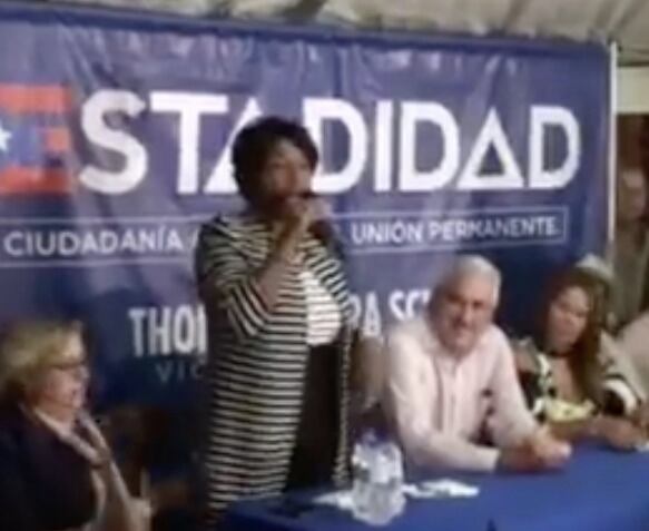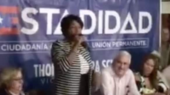 “¡Arriba la bandera estadista! ¡Puerto Rico estado 51! Eso es lo que estamos persiguiendo y yo siento hasta que huele como a nieve, ¿a ti te huele? Huele a nieve, huele a progreso, huele a prosperidad, huele a cambio… ¡Puerto Rico, estado 51!”, exclamó la senadora ante un grupo de estadistas. La legisladora estaba acompañada del presidente del Senado, Thomas Rivera Schatz y de la representante, Lourdes Ramos, entre otros líderes estadistas.