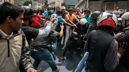 Entretanto, decenas de simpatizantes del Gobierno llegaron al lugar de la protesta y comenzaron a gritar consignas a favor de la Constituyente y de la llamada revolución bolivariana. Los manifestantes, chavistas y opositores, pasaron de los gritos a los empujones y a los puñetazos durante varios minutos y frente a un contingente de la GNB.