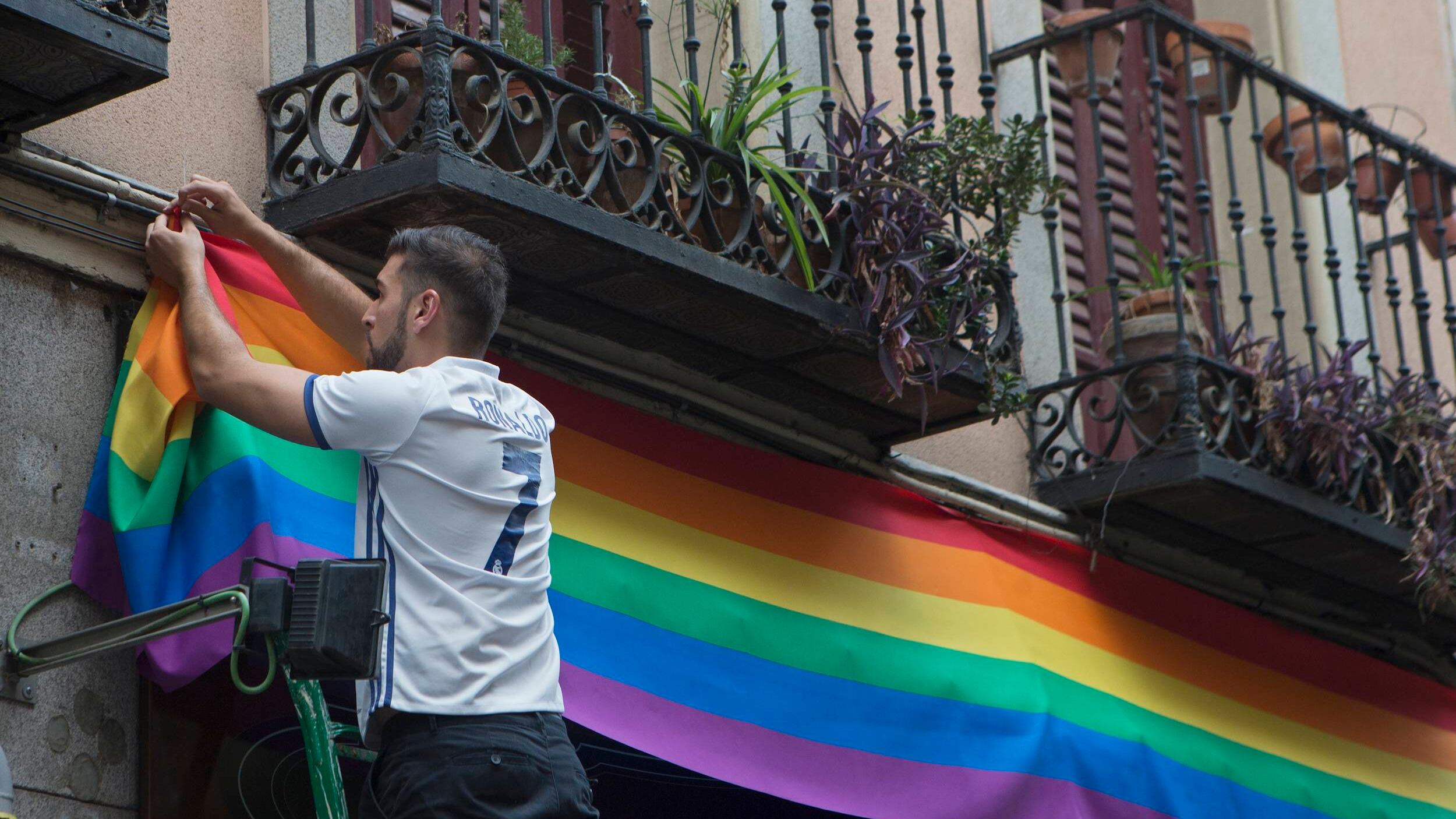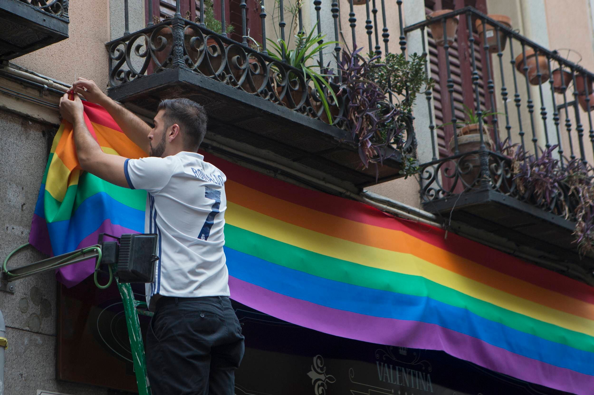 “Orgullo sí, pero no así”, dice la pancarta que quiere colocar una asociación de vecinos en el corazón de Chueca, conocido como “el barrio gay” del centro de Madrid. Las banderas arcoíris que pueblan muchos balcones evidencian que la zona sigue siendo epicentro del activismo LGBT, pero también hacen de gancho comercial para aprovechar la oportunidad y vender de todo, desde calcetines hasta palomitas de maíz.