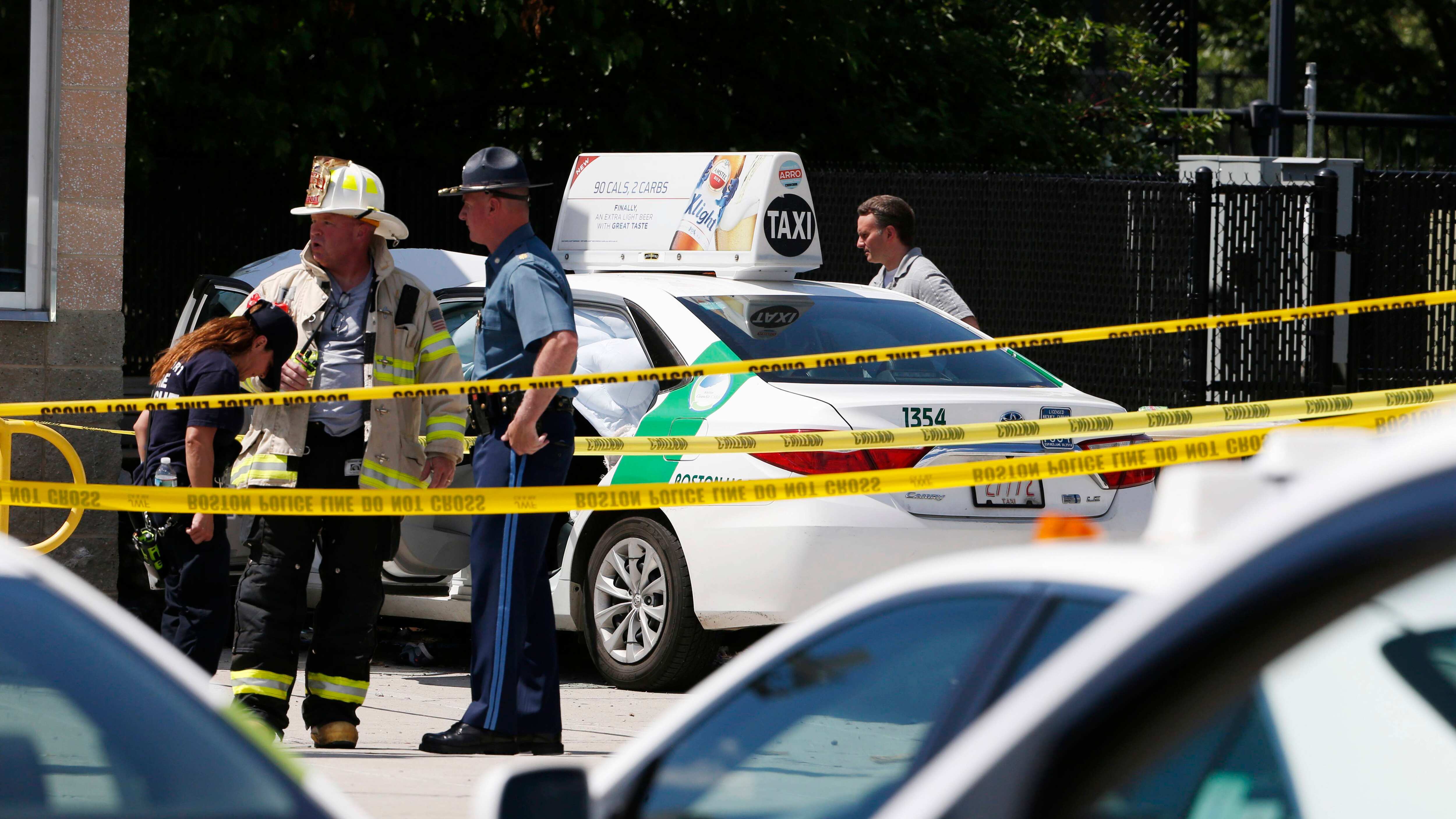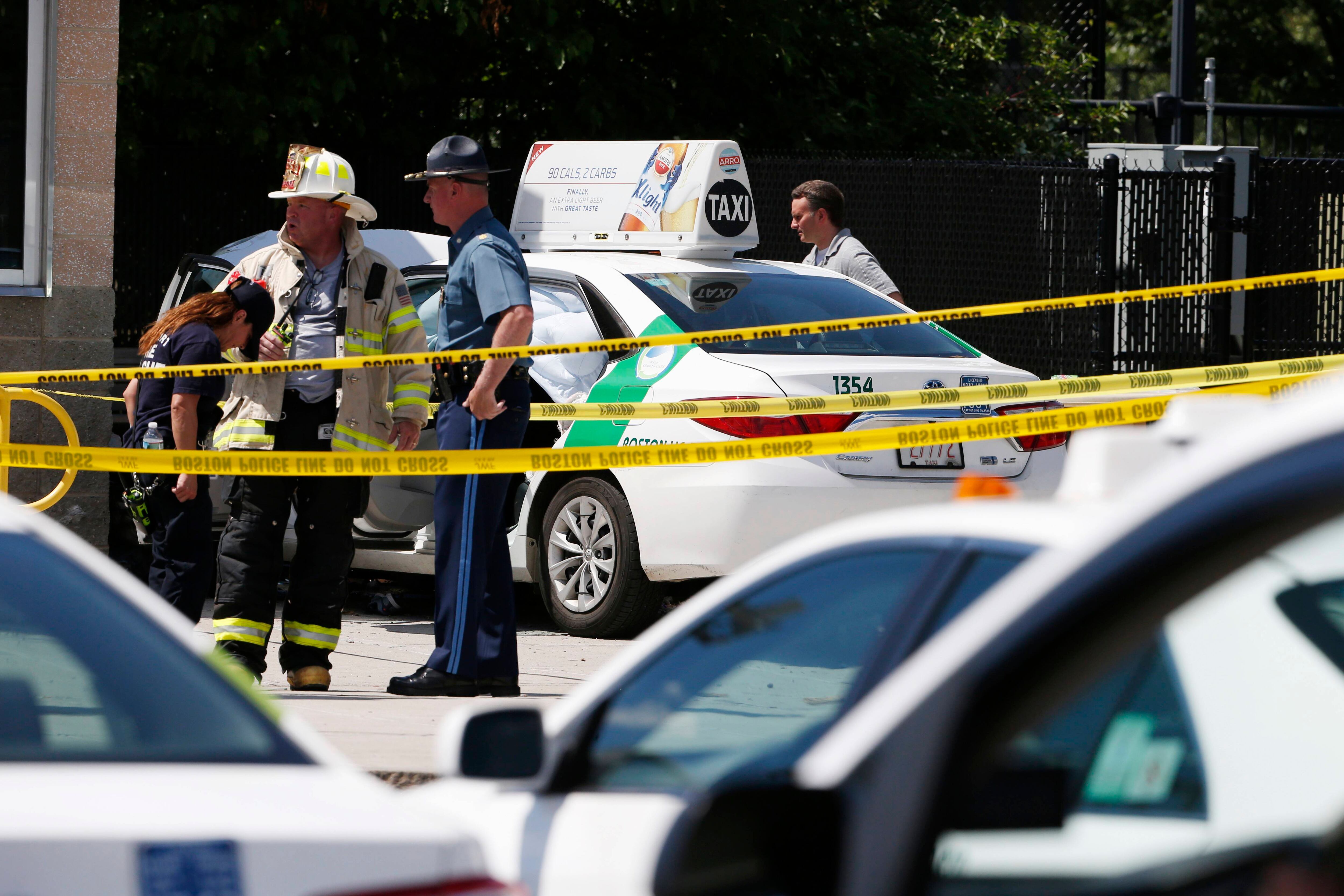 El vehículo del taxista de 56 años atropelló a peatones en un área de espera de taxis junto al aeropuerto Logan el lunes por la tarde. El vocero de la policía estatal David Procopio dijo que 10 personas fueron heridas, algunas de gravedad.
