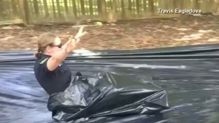 Los oficiales Joe Jonas y Carrie Lee estaban respondiendo a una llamada de un residente en la ciudad de Asheville alegando que el tobogán estaba bloqueando el camino, pero en lugar decidieron unirse a la diversión al darse cuenta de que no le impusieron ningún problema. Los EE.UU. conmemoraron su 241 cumpleaños el 4 de julio, con los estadounidenses celebrando la ocasión con la familia, amigos y festividades. Video: Reuters.