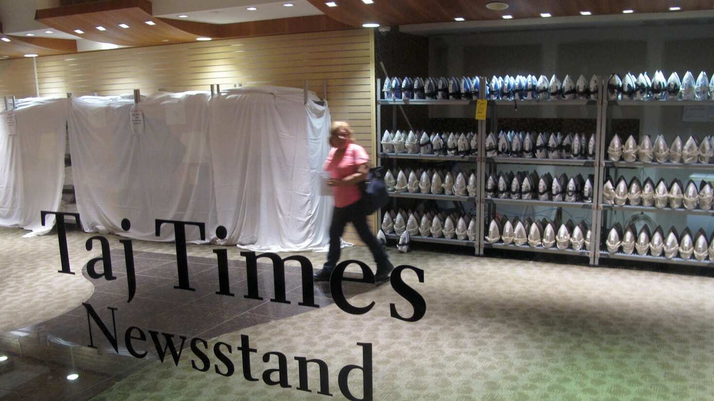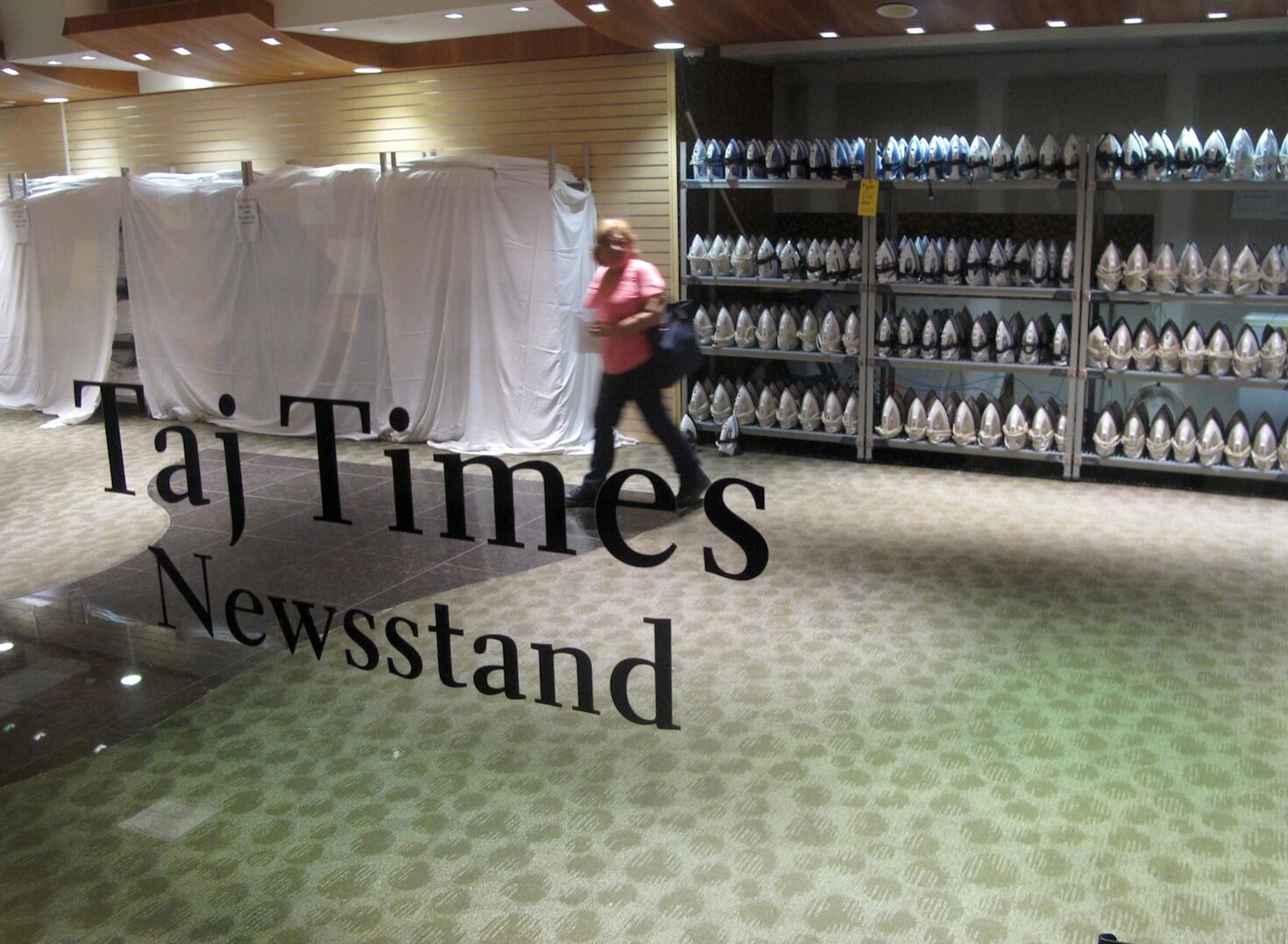 ATLANTIC CITY, Nueva Jersey, EE.UU. (AP) — Centenares de personas acudieron el jueves al vestíbulo del Trump Taj Mahal en Atlantic City con esperanza de adquirir en barata numerosos objetos vendidos en liquidación, incluyendo las arañas de cristal del ostentoso casino construido por Donald Trump en los noventa.