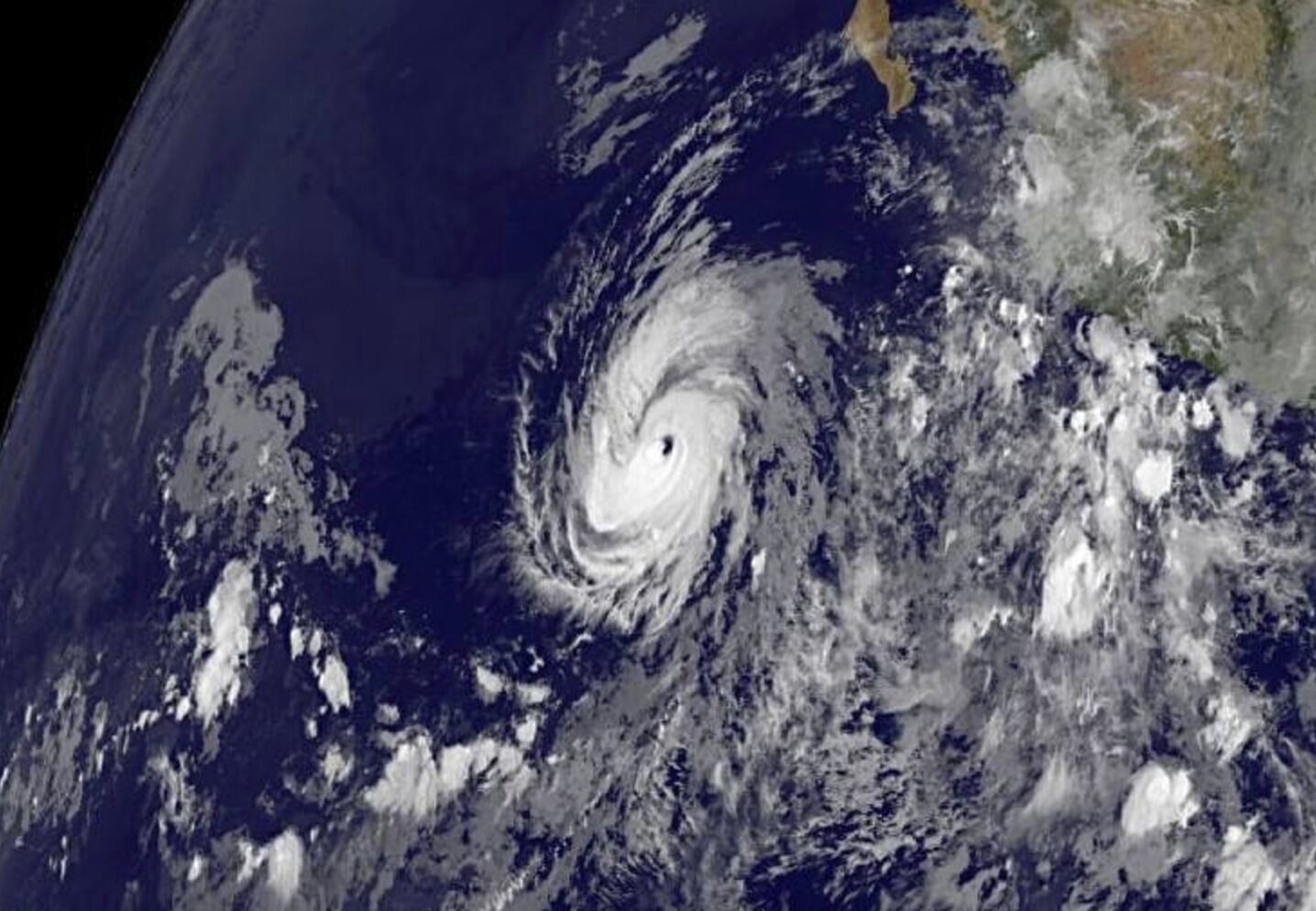 El Centro Nacional de Huracanes de Estados Unidos informó que el meteoro tenía vientos máximos sostenidos de 185 kph (115 mph) el domingo por la mañana. Su vórtice se ubicaba a 910 kilómetros (565 millas) al suroeste del extremo de la península de Baja California, en México.