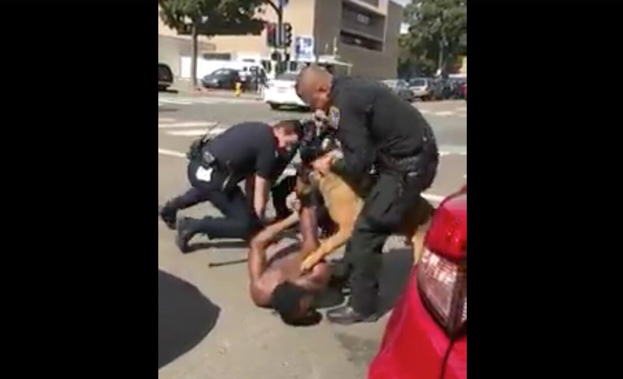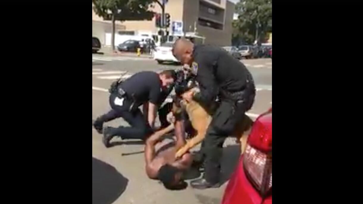En el video –capturado en las calles de San Diego, California– se puede ver cómo el animal muerde al sospechoso en su brazo izquierdo y lo sostiene con fuerza apretando sus mandíbulas. El hombre, en medio del arresto, grita ante el ataque del animal.