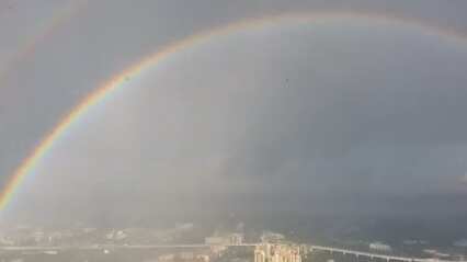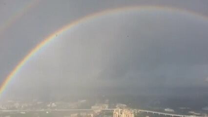 Arcoíris puede aparecer cuando la luz del Sol brilla a través de las gotas de lluvia, el rocío o la niebla. “Desde el suelo, por lo general, sólo la parte superior de un arcoíris es visible porque las direcciones hacia el suelo tienen menos gotas de lluvia, pero desde el aire, el círculo completo de 360 grados es más visible”, dijo la NASA. Aquí, las imágenes fueron tomadas desde una altura de 360 metros (1.181 pies). El edificio del centro de Lakhta en San Petersburgo, que finalizará en 2018, debería llegar a 462 metros (1.515 pies), lo que lo convertiría en el más alto de Europa. Video: Reuters.