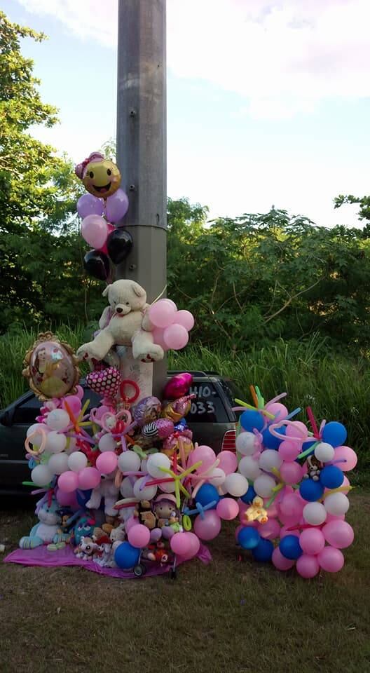 Más de una decena de personas llegaron hasta el lugar de la escena para colocar globos en honor a los fallecidos.