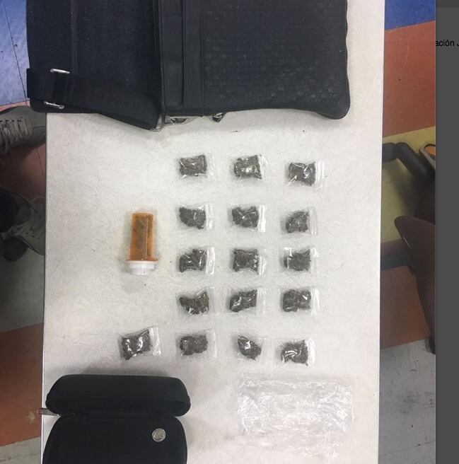 Además, se ocuparon 16 bolsas de marihuana, un envase cilíndrico con picadura de marihuana y 11 dólares en efectivo.